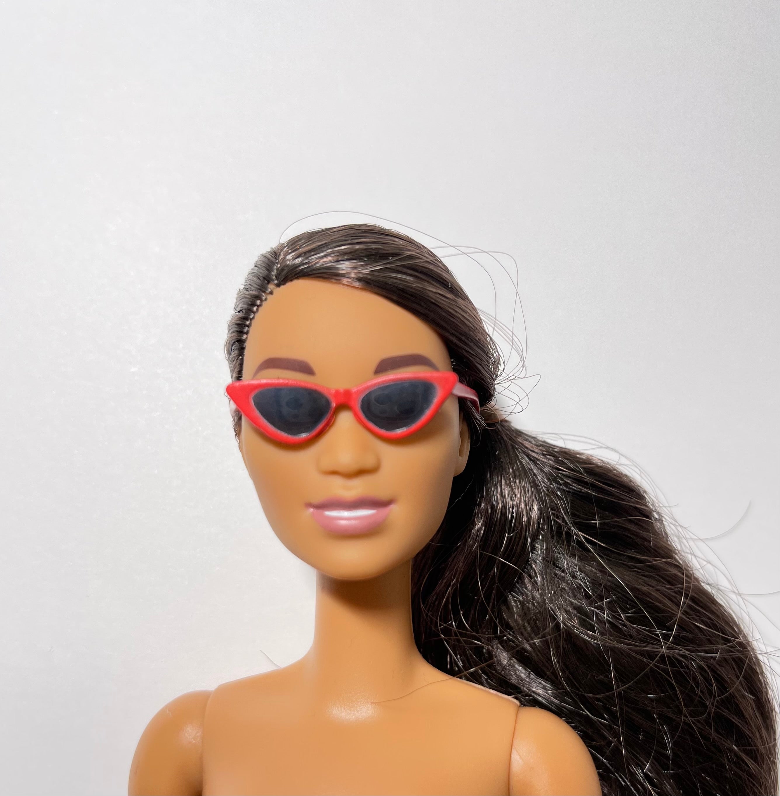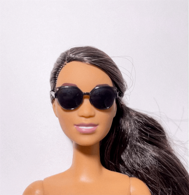 Black Oversize Round Cat Eye Sunglasses - 1:6 Scale