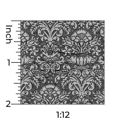 - 2 inch square sample of the wallpaper pattern in 1:12 one inch scale