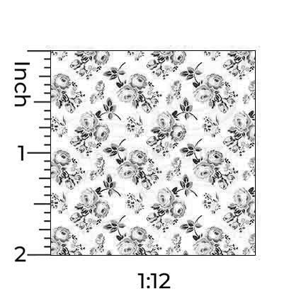 - 2 inch square sample of the wallpaper pattern in 1:12 one inch scale