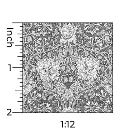 - 2 inch square sample of the wallpaper pattern in 1:12 one inch scale