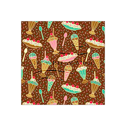 Transform your dollhouse into a sweet ice cream shop with this miniature wallpaper. Featuring mouth-watering sundaes, cones, and banana splits on a colorful background of confetti sprinkles, in pink, brown, mint green, and yellow. Add a playful touch to your dollhouse décor!