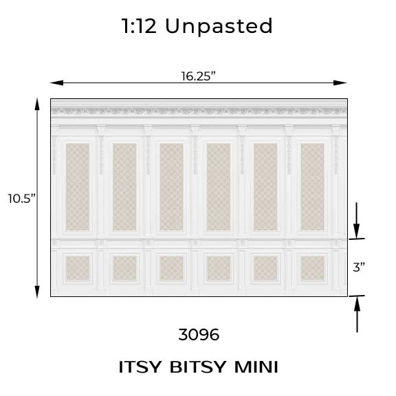 Add architectural detail with our dollhouse wall panel wallpapers. You can use the panel or boiserie papers to accent one wall or surround the entire room. The panels can be cut apart and companion prints can be used to create a custom fit to your room. Three views of each wall panel color is provided. The third view shows the full sheet. Scroll to the very end for rulers.