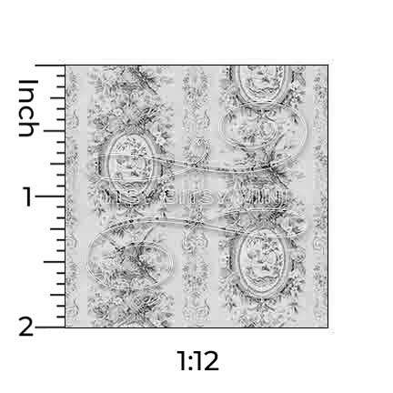 - 2 inch square sample of the wallpaper pattern in 1:12 one inch scale